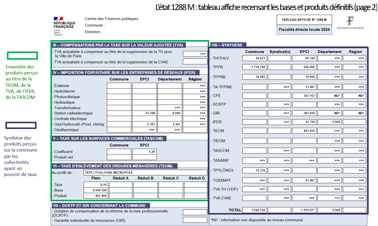 Ce document de deux pages a pour objectif de faire connaitre aux contribuables la nature et les montants des différentes impositions locales perçues par les collectivités et les groupements sur le périmètre de la collectivité. Transmis à l’issue des rôles généraux (en décembre), il permet également aux communes de prendre connaissance et éventuellement de coordonner leur politique fiscale avec celle des autres collectivités.