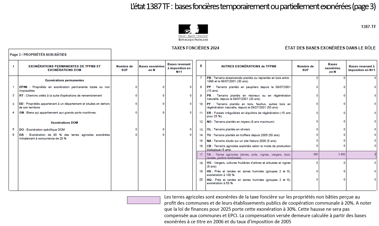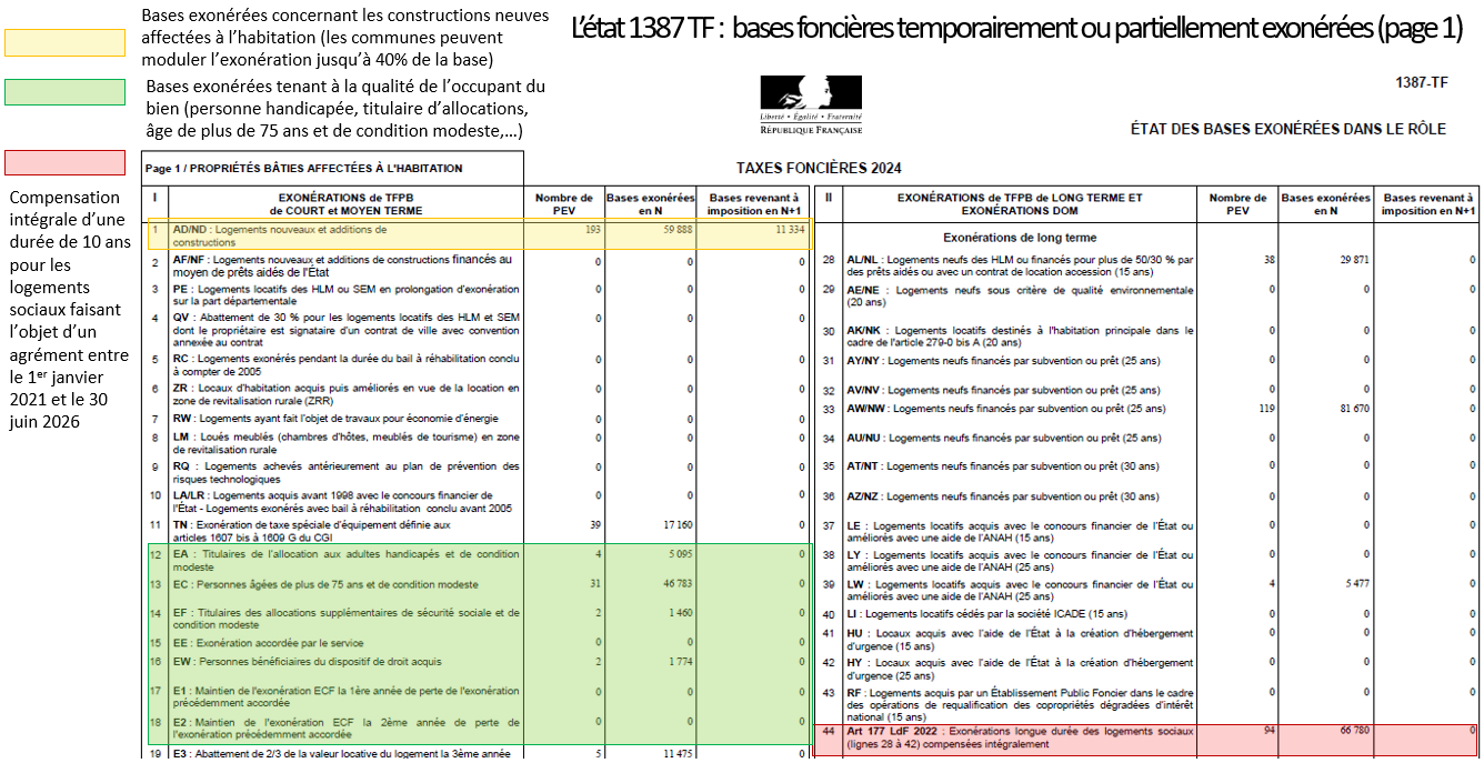 L’état 1387M-TF : le document recensant les bases foncières temporairement ou partiellement exonérées