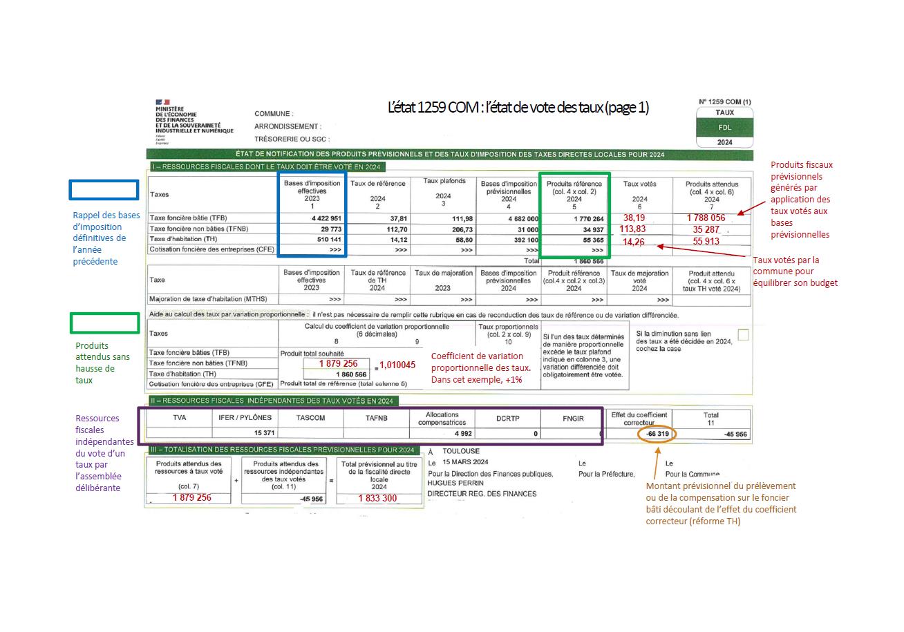 L’état fiscal 1259 : document de notification des bases prévisionnelles de la fiscalité directe locale